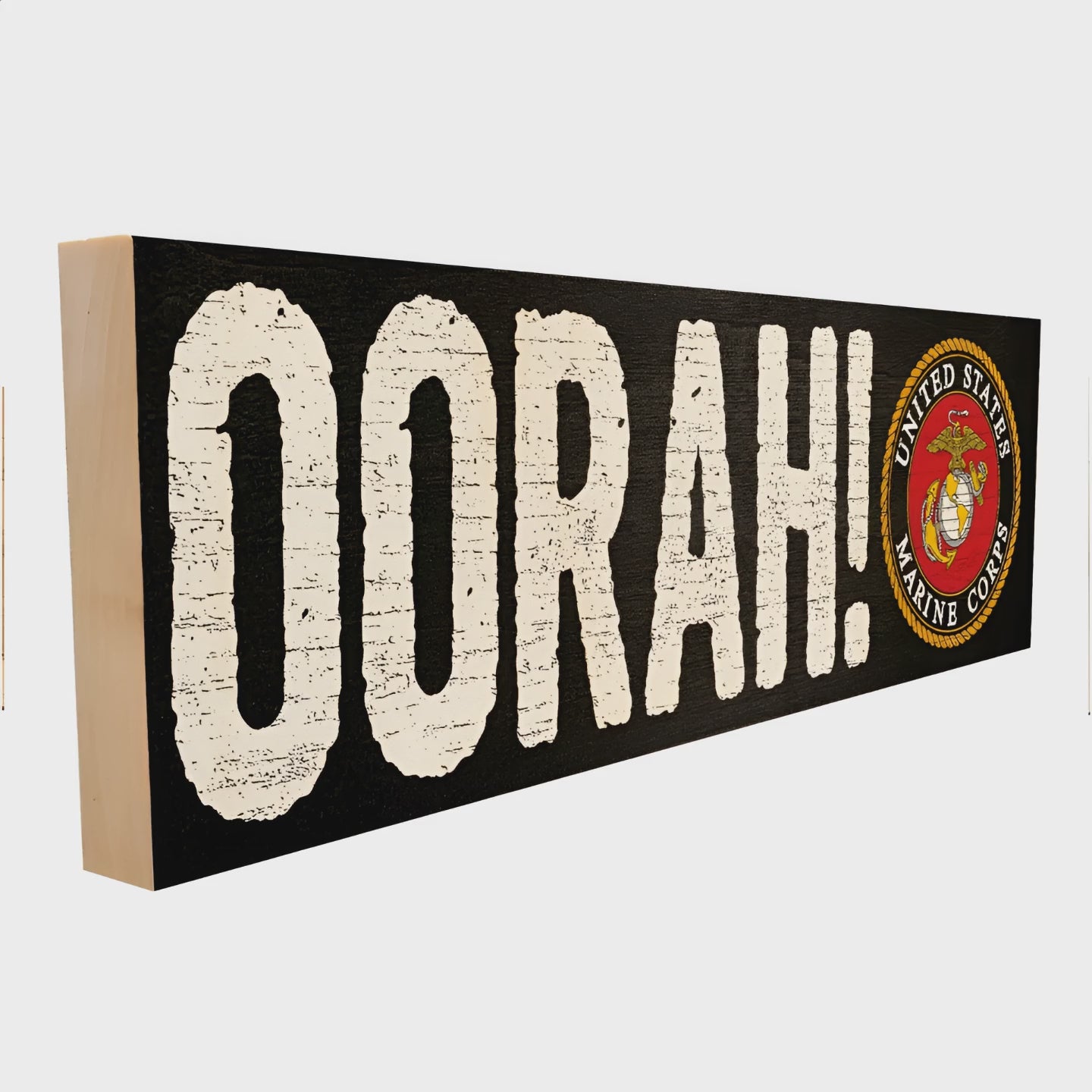 OORAH! Marine Corps Wood Sign. USMC Gifts for Men or Women. Semper Fi Official United States American Military Veteran Decorative, 3.5"x 12"